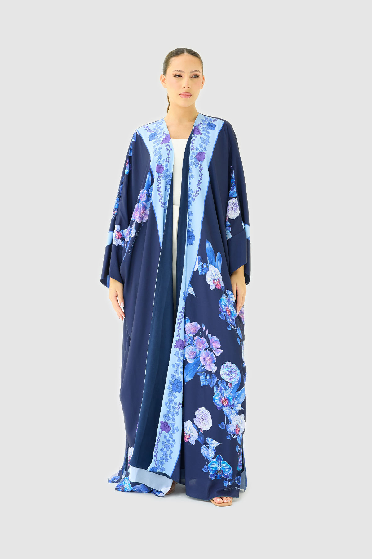 Please note that this abaya is designed in a Bahraini cut (Free Size), and the chest width cannot be adjusted or resized